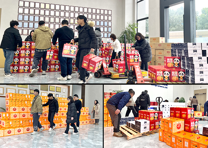 現(xiàn)場(chǎng)熱火朝天~大家齊心協(xié)力,卸下一箱箱年貨。沉甸甸的年貨,承載著新春團(tuán)圓的期望,飽含公司對(duì)員工的濃濃關(guān)愛(ài)與真摯祝福。